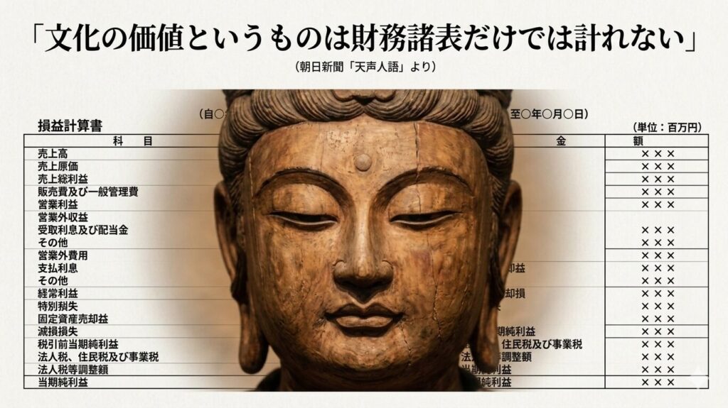 社会 財務省、文化庁へ国立博物館の閉館・統合も含む強気の「再編」意向を示す、稼げなければ文化継承の危機、天声人語「財務諸表だけでは計れない文化の価値というものがあるはずだ」