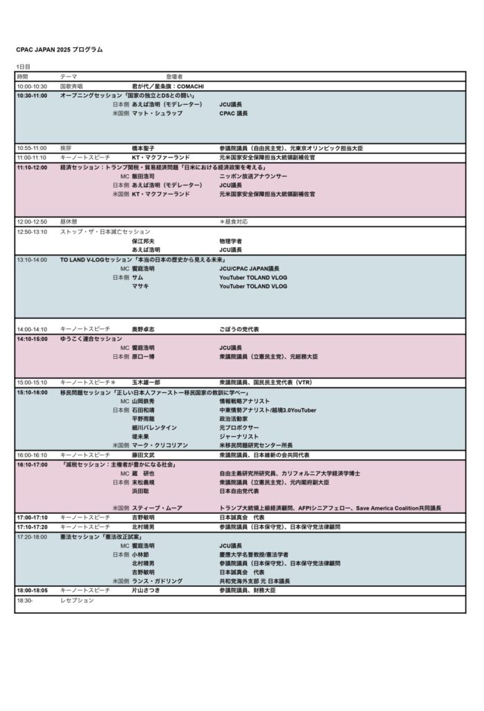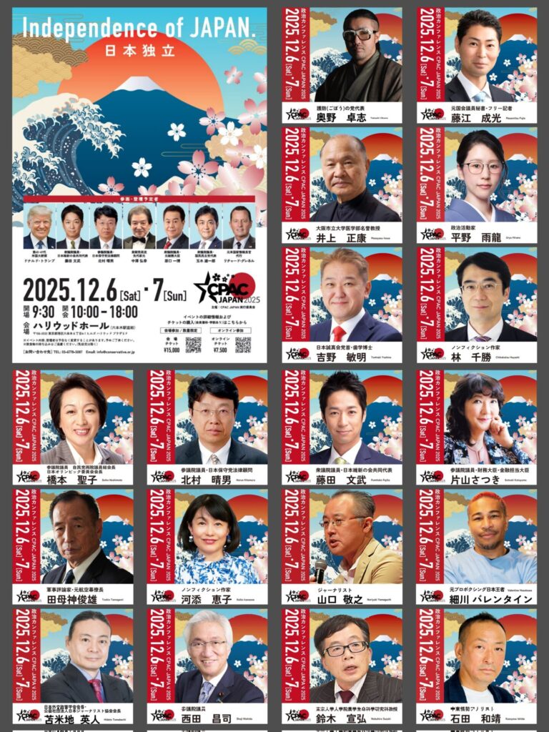 12月6日〜7日、東京・六本木のハリウッドホールで開催されたCPAC JAPAN 2025が、盛況のうちに幕を閉じた。日本最大級の国際政治カンファレンスとして、保守派の政治家、活動家、専門家らが一堂に会し、1日目はトランプ関税・貿易経済問題「日米における経済政策を考える」、本当の日本の歴史から見える未来、ゆうこく連合セッション、移民問題セッション、減税セッションなど、2日目は憲法セッション「憲法改正試案」、WHO?反ワクチンセッション、安全保障セッション「日本の核武装論について考える」、食糧安全保障セッション、「反グローバリズム:グローバリズム問題を考える」といった喫緊のテーマを巡る熱い議論が繰り広げられた。米国保守連合(ACU)と日本保守連合(JCU)の共催で、第9回目を迎えたこのイベントは、2017年の初開催以来、保守のグローバルな連帯を象徴する場として定着している。