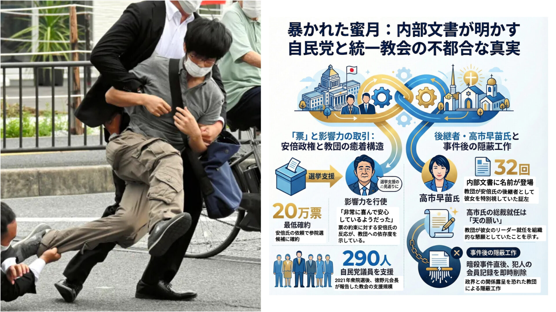 安倍元首相暗殺という未曾有の悲劇は、皮肉にも、統一教会と政界の歪んだ関係を白日の下に晒す引き金となった。事件直後の教団の対応は、彼らが隠し続けてきた関係の異常性を自ら証明するものであった。