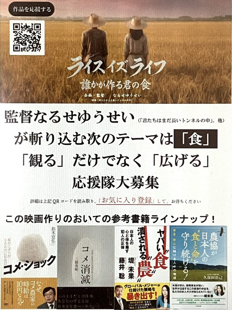 現在、本プロジェクトでは「応援隊」の募集を行っています。単に映画を鑑賞するだけでなく、情報を拡散し、共に日本の食文化を考え直すムーブメントを作ることが目的です。