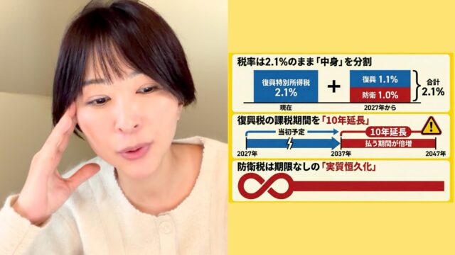 経済 さとうさおり氏、ステルス防衛増税の解説「防衛特別所得税は実質恒久化」「復興特別所得税は10年延長」